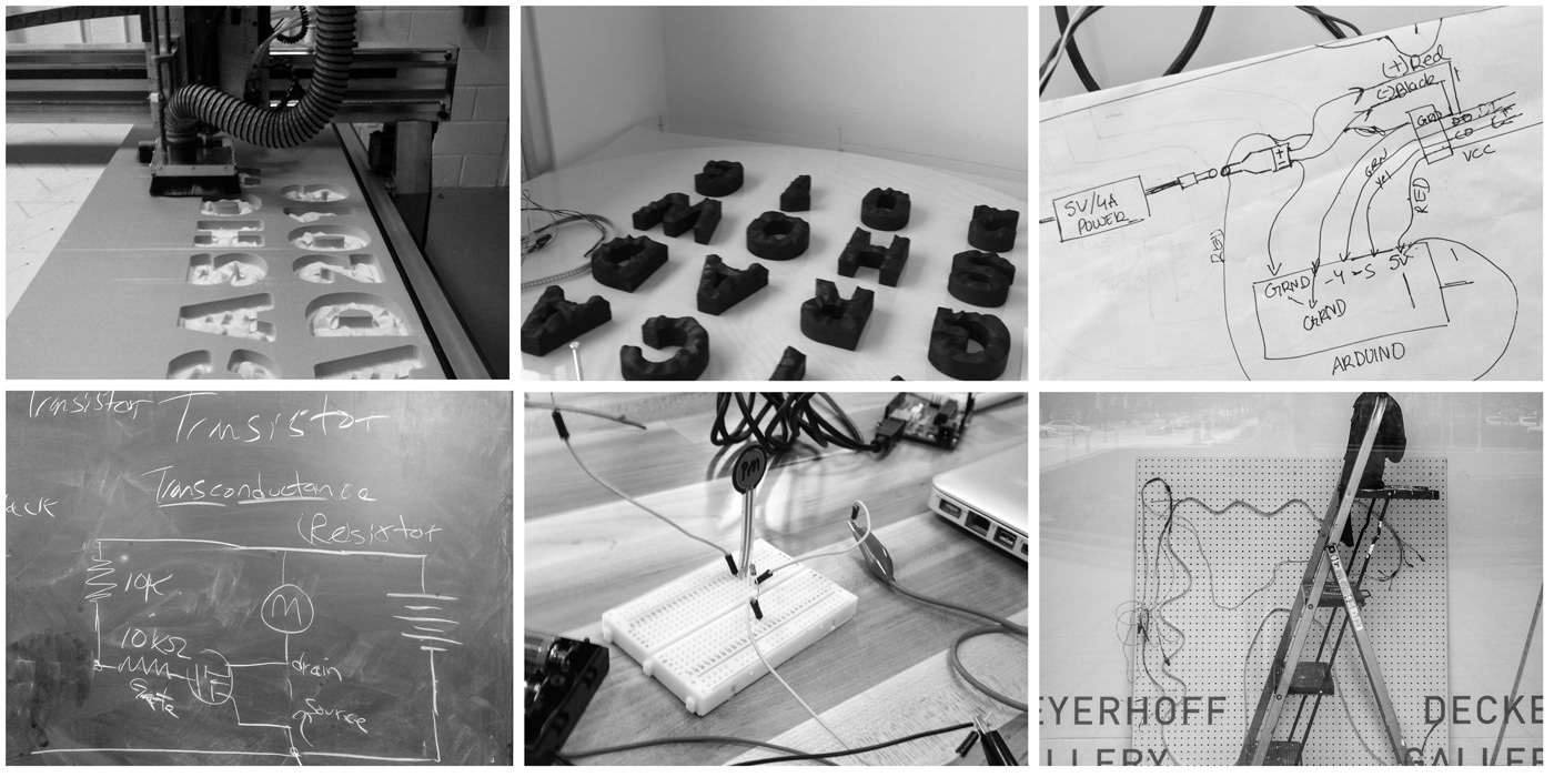 Process work for circuit development and coding the programme for LEDs on Arduino. Also, the fabrication of letters using Rhino and CNC milling.